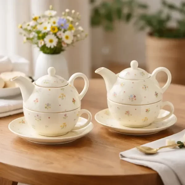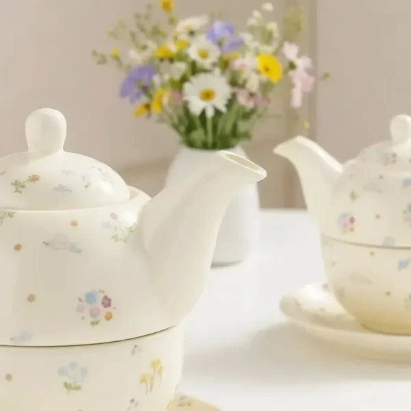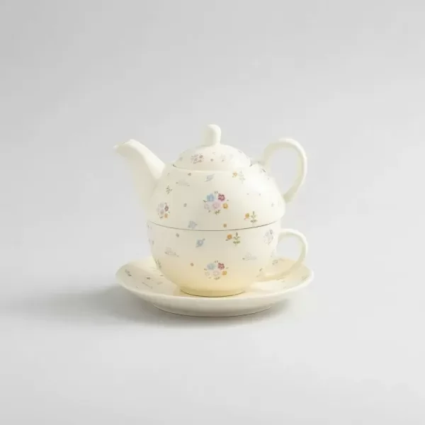 Ser de té con diseño Floral 🫖 Incluye taza, tetera, plato y caja de regalo 💌