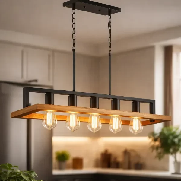 Colgante industrial 5 luces madera c/estructura de hierro y rosca E27.
