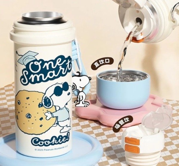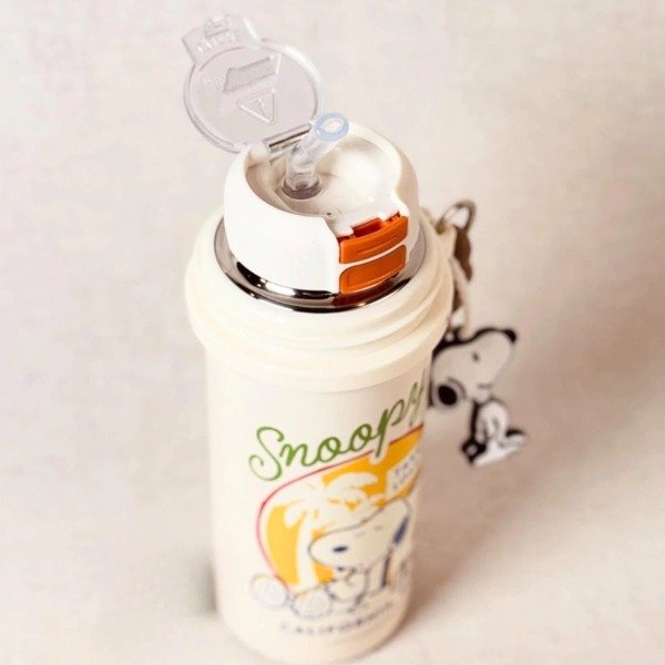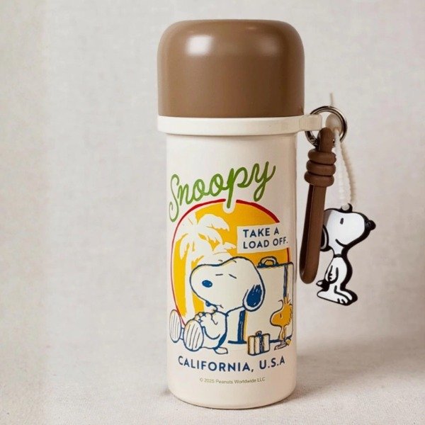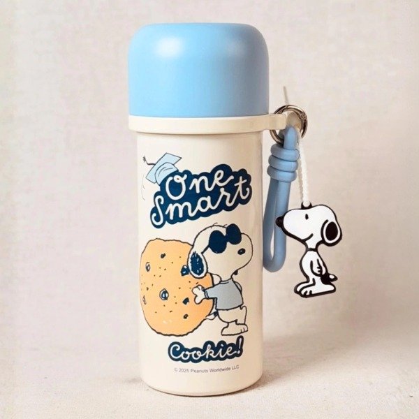 Termo de acero inoxidable importado original de Snoopy con tapa a rosca y doble pico que se adapta a cualquier edad. Incluye tapa, bombilla y charm de Snoopy. Mantiene la temperatura de tu bebida por horas, es súper práctico y cómodo de transportar.